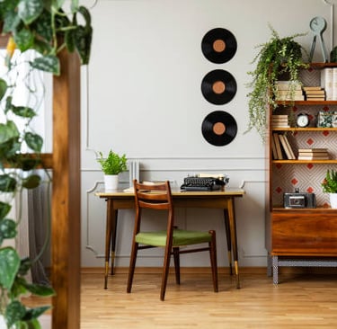 You don’t need authentic vintage pieces — many modern reproductions capture the same look while fitting today’s lifestyle. Consider essentials like a wooden credenza, Eames-style lounge chair, or minimalist sofa to anchor your space.